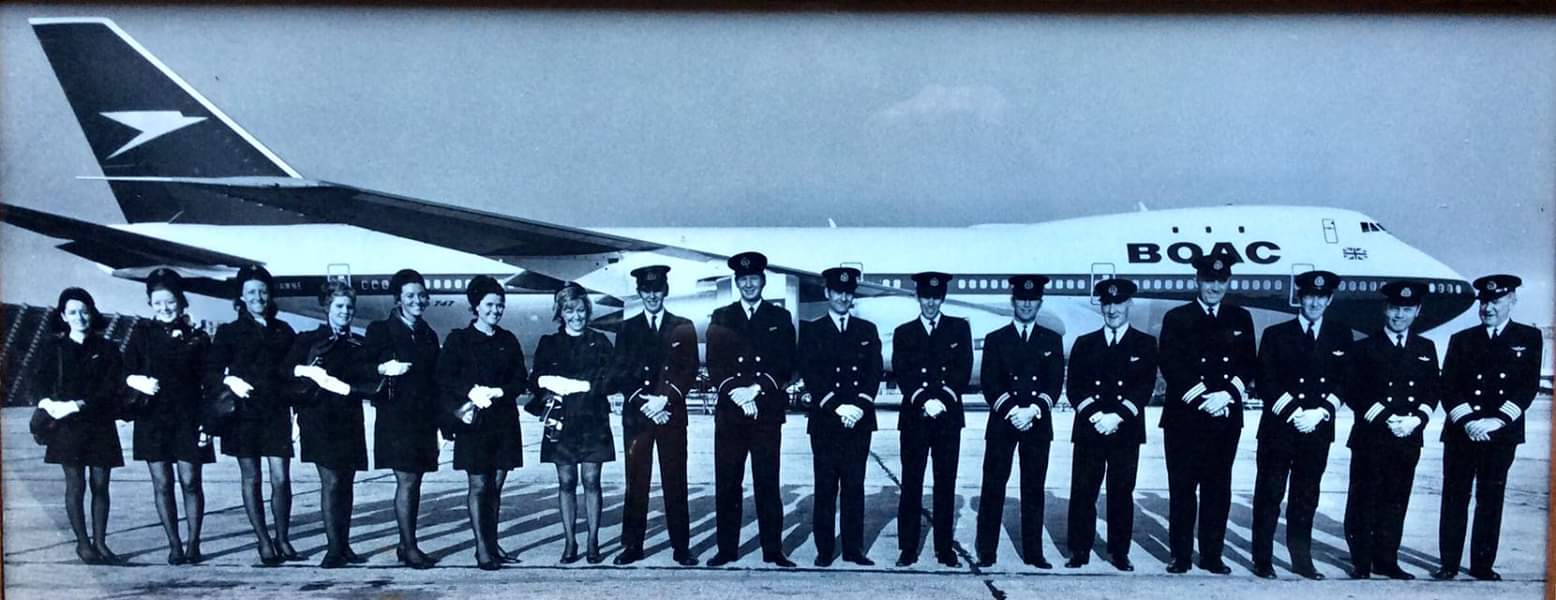 1 BOAC April 1971 - B747 complete crew in front of aircraft LHR - Aoril 1971