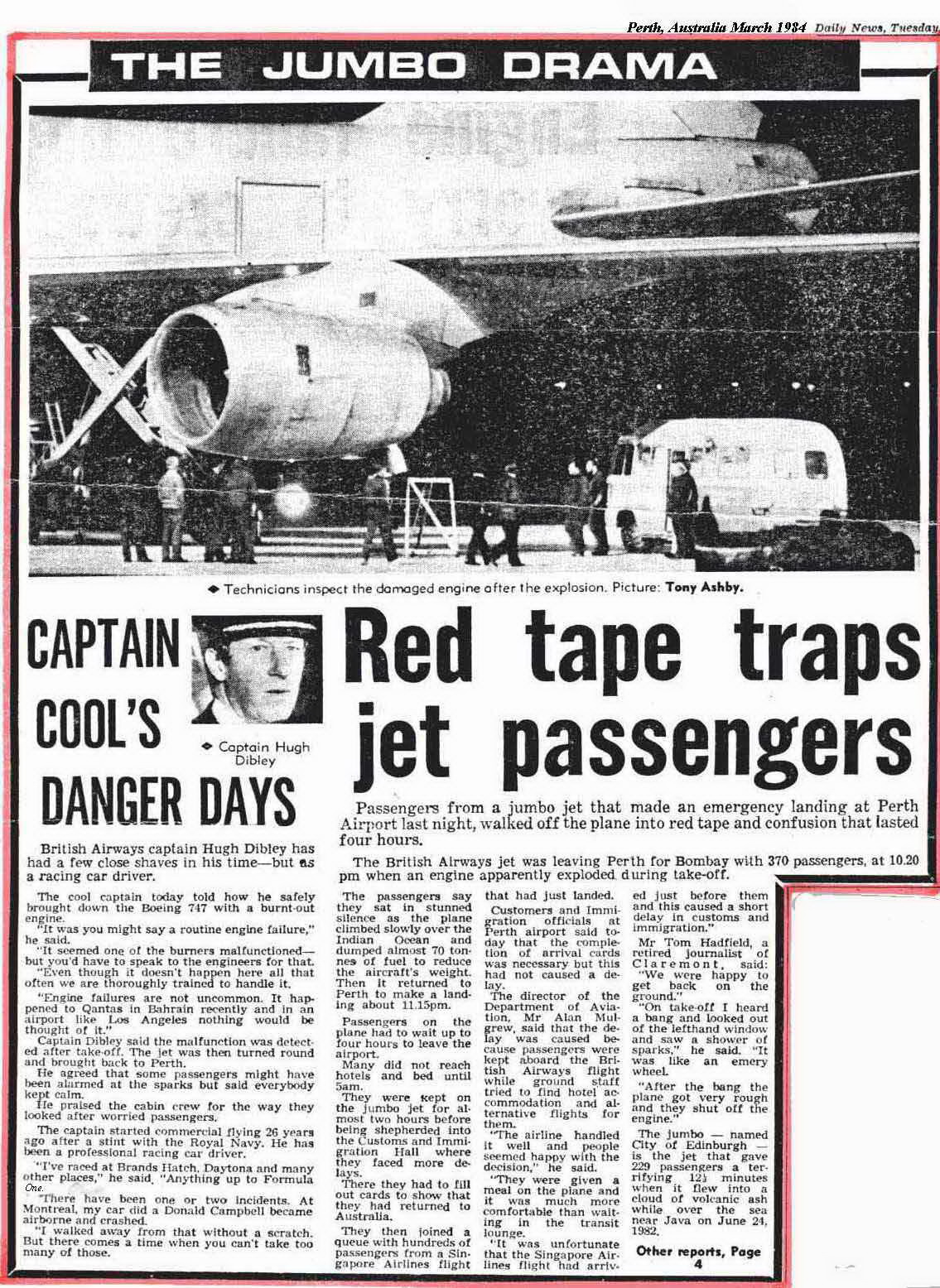 8c BA B747 Perth G-BDXH City Edinbrg Eng1 fire - Capt Cool Daily Express 21mar1984